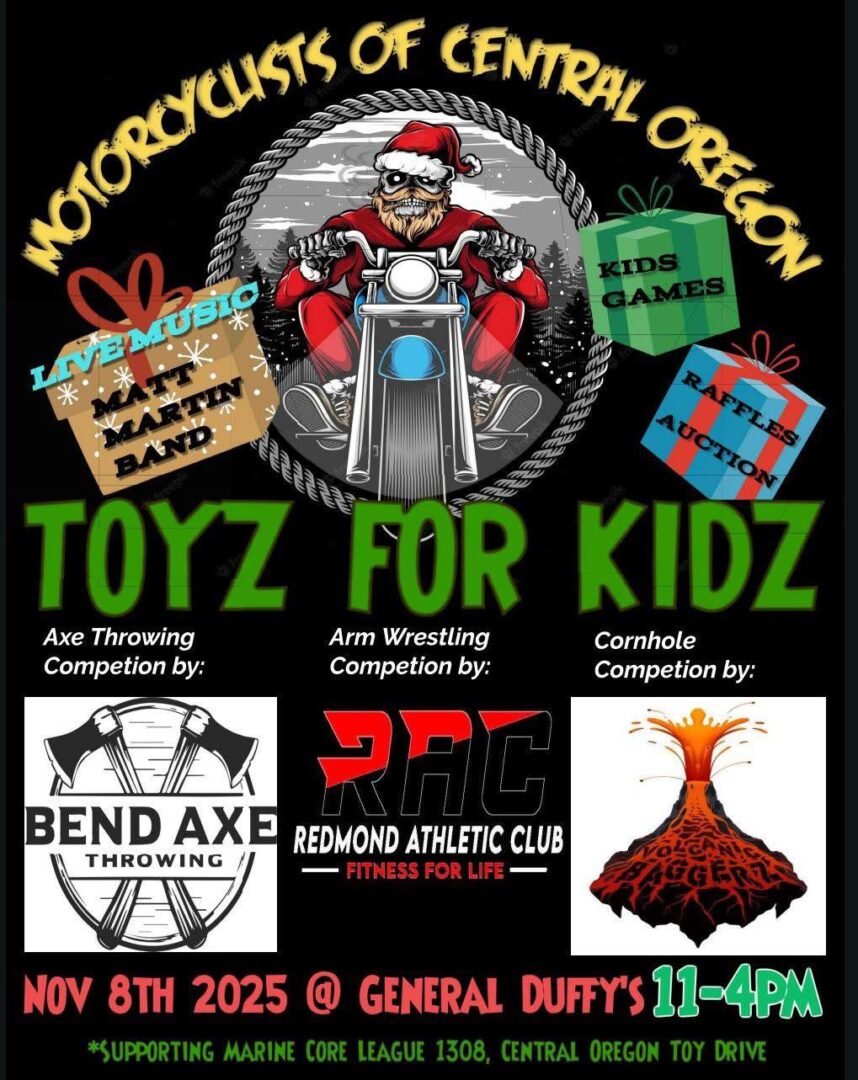 Motorcyclists of Central Oregon is being resurrected to gather toys/gifts for our community as the Marines Toys for Tots will not be operational in Central Oregon this year.